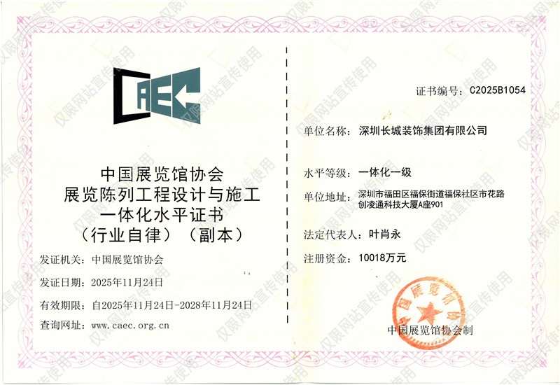 中国展览馆协会展览陈列工程设计与施工一体化水平证书