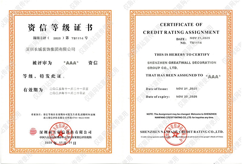 中国建筑装饰协会AAA企业信用等级证书(2015-2024)