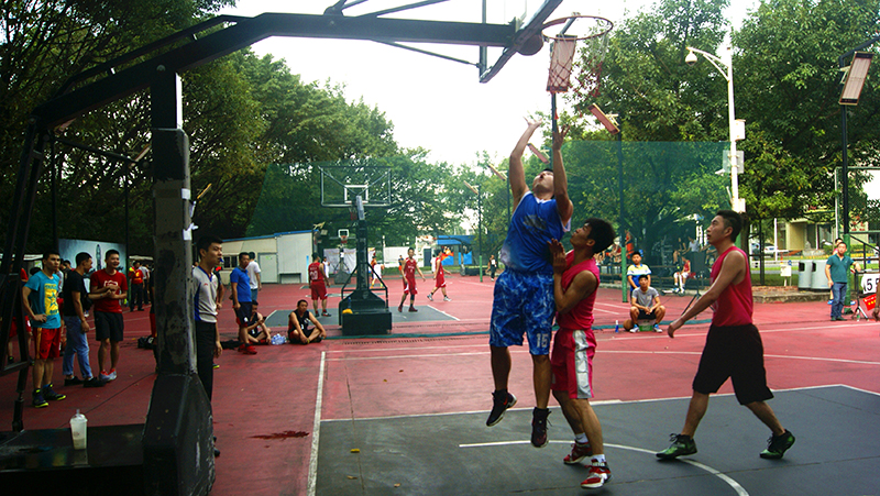 两队为现场观众奉献了一场精彩的比赛。比赛紧张激烈的进行着,我方球员状态较佳每次进攻都能得分,但华加日的队员们也不气馁。双方队员频频强攻得分,场面异常火爆。每个队员都在积极跑位,为队友作掩护,还时不时有精妙的传球、漂亮的配合和精彩的上篮。比赛中也有意外碰撞跌倒发生,可是队员们没有因此影响比赛情绪,相互之间拍着肩膀互相安慰一下接着再来。
