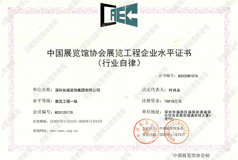 中国展览馆协会展览工程企业水平证书