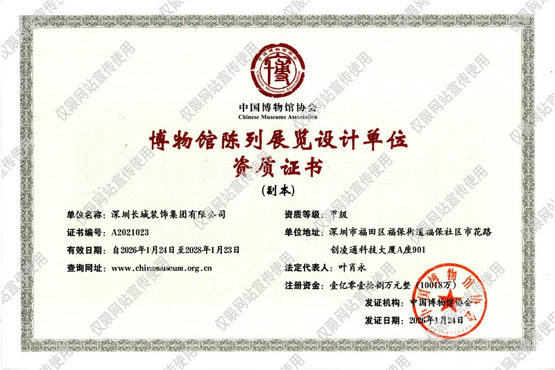 博物馆陈列展览设计单位甲级资质证书