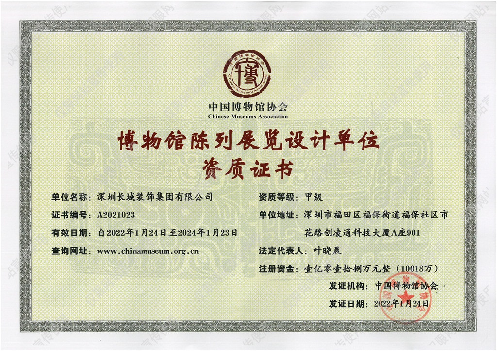 •         近日,集团资质申报工作再传喜讯,经中国博物馆协会核准,我司申报的“博物馆陈列展览施工单位壹级资质”及“博物馆陈列展览设计单位壹级资质”成功获批。