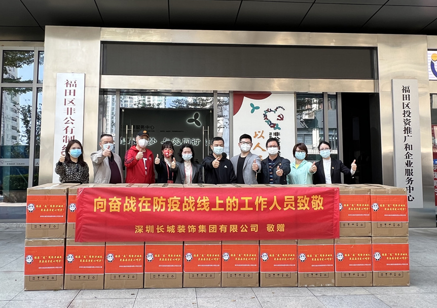 •         2022春季疫情再次来袭深圳,无数抗疫人员挺身而出,奋战在抗疫一线,在祖国和人民需要的关键时刻,他们毫不畏惧、冲锋在前,守护着居民的安全。2022年3月4日,深圳长城装饰集团党支部响应福田区非公有制经济组织党委号召,向抗疫人员捐赠了2000件速干衣等防疫物资,助力一线防疫,为他们加油鼓劲,共同携手坚决打赢疫情阻击战。