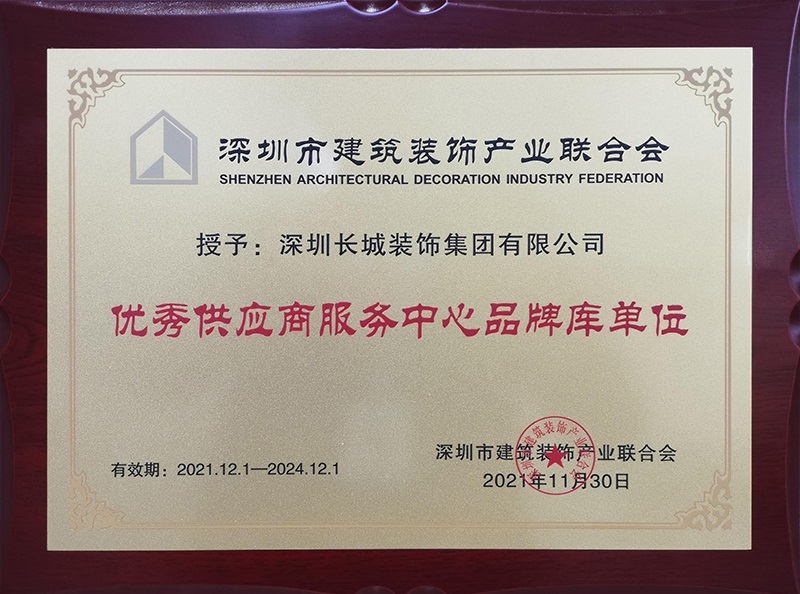 喜讯 | 深圳长城装饰集团被授予“优秀供应商服务中心品牌库单位”