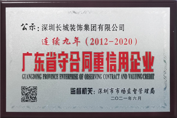 •         近日,2020年度“广东省守合同重信用企业”评选结果出炉,长城被授予“连续九年(2011-2020)广东省守合同重信用企业”。