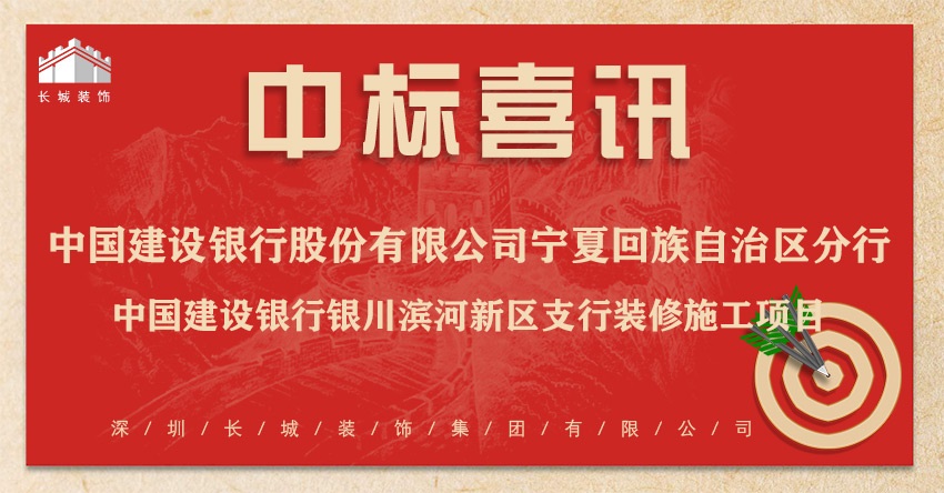 恭喜我司中标:中国建设银行股份有限公司宁夏回族自治区分行-中国建设银行银川滨河新区支行装修施工项目