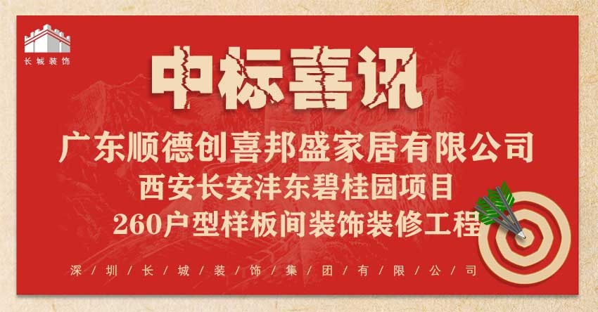 恭喜我司中标:广东顺德创喜邦盛家居有限公司-西安长安沣东碧桂园项目260户型样板间装饰装修工程