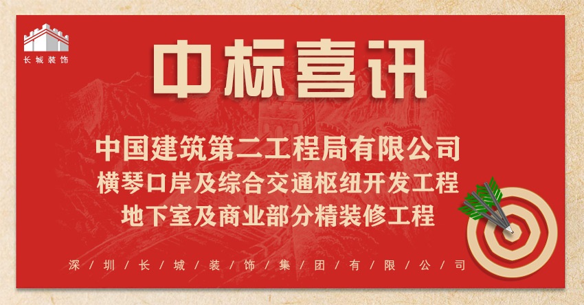 恭喜我司中标:中国建筑第二工程局有限公司-横琴口岸及综合交通枢纽开发工程C区主体地下室及商业部分精装修工程Ⅱ标