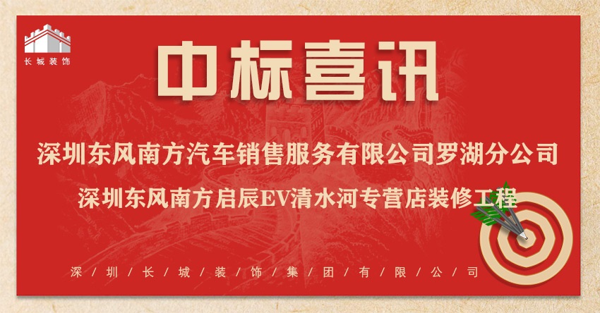 恭喜我司中标:深圳东风南方汽车销售服务有限公司罗湖分公司-深圳东风南方启辰EV清水河专营店装修工程