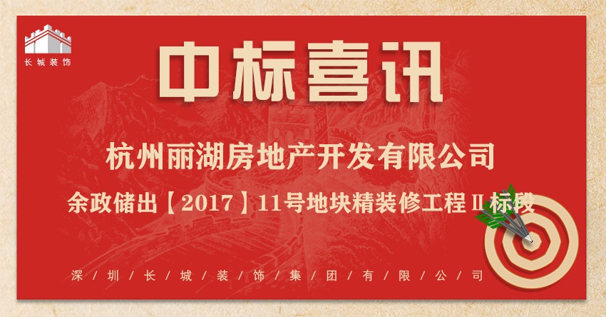 恭喜我司中标:杭州丽湖房地产开发有限公司-余政储出【2017】11号地块精装修工程Ⅱ标段