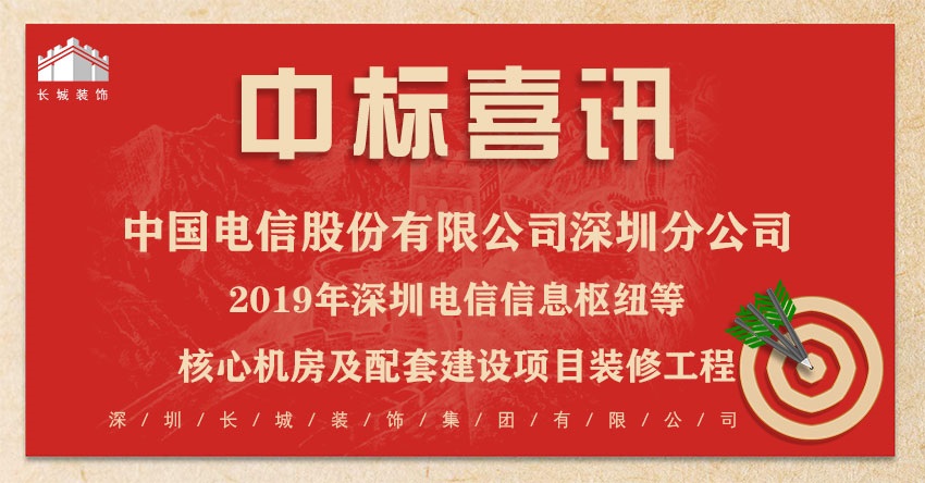 恭喜我司中标:中国电信股份有限公司深圳分公司-2019年深圳电信信息枢纽等核心机房及配套建设项目装修工程