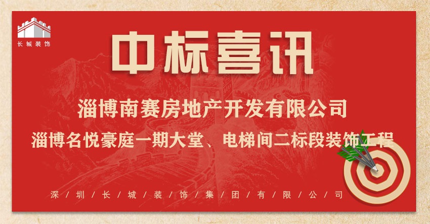 恭喜我司中标:淄博南赛房地产开发有限公司-淄博名悦豪庭一期大堂、电梯间二标段装饰工程