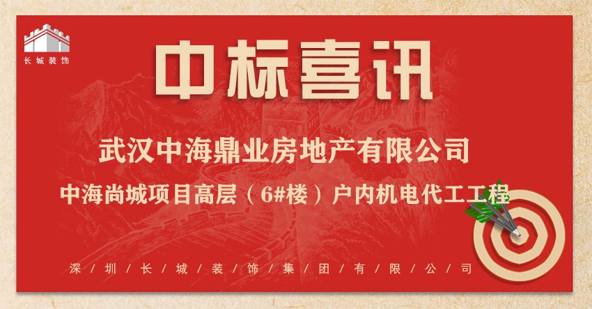 恭喜我司中标:武汉中海鼎业房地产有限公司-中海尚城项目高层(6#楼)户内机电代工工程