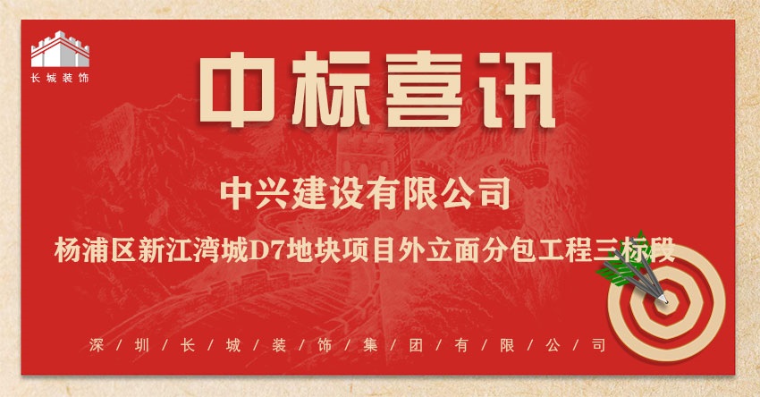 恭喜我司中标:中兴建设有限公司-杨浦区新江湾城D7地块项目外立面分包工程三标段