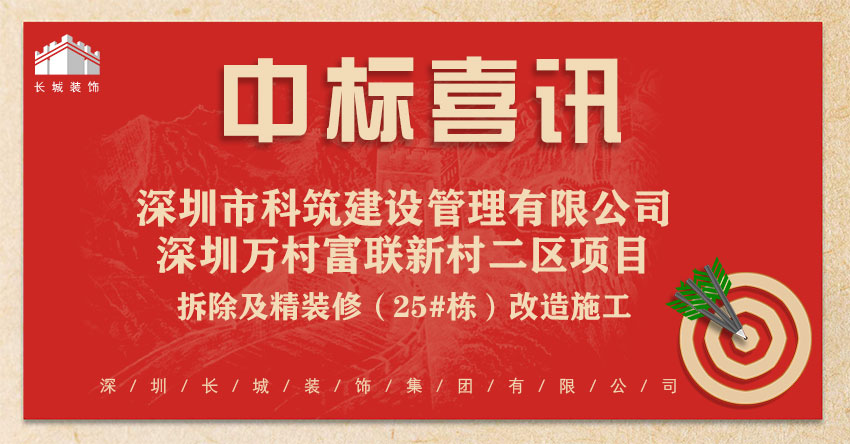 恭喜我司中标:深圳市科筑建设管理有限公司-深圳万村富联新村二区项目拆除及精装修(25#栋)改造施工!