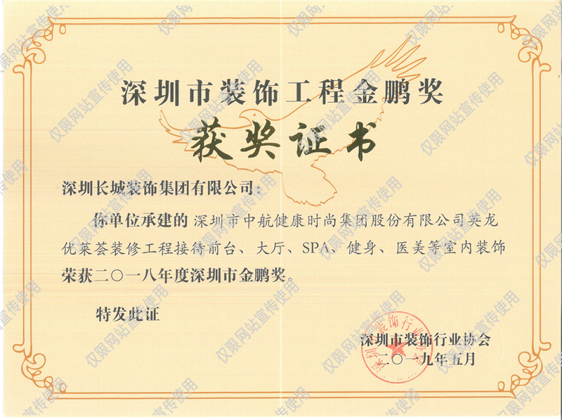 今日,我司收到来自于深圳市装饰行业协会颁发的 “2018年度深圳市装饰工程金鹏奖”的获奖证书,两项目评选结果已于2019年4月28日揭晓。