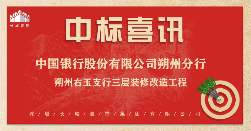 恭喜我司中标:中国银行股份有限公司朔州分行-中国银行股份有限公司朔州右玉支行三层装修改造工程