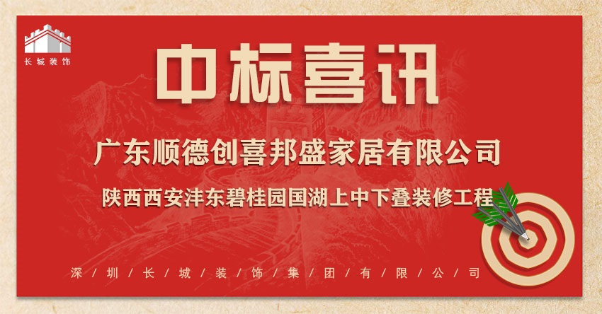 恭喜我司中标:广东顺德创喜邦盛家居有限公司-陕西西安沣东碧桂园国湖上中下叠装修工程