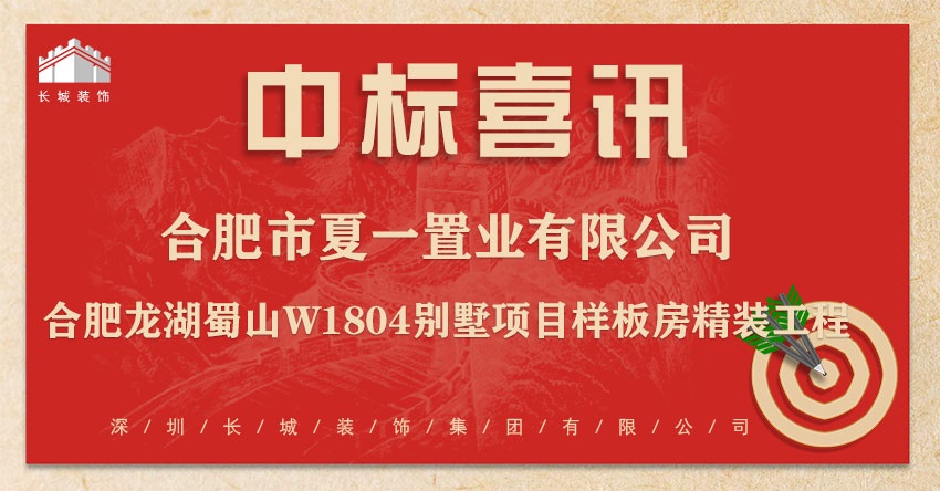 恭喜我司中标:合肥市夏一置业有限公司-合肥龙湖蜀山W1804别墅项目别墅样板房精装工程