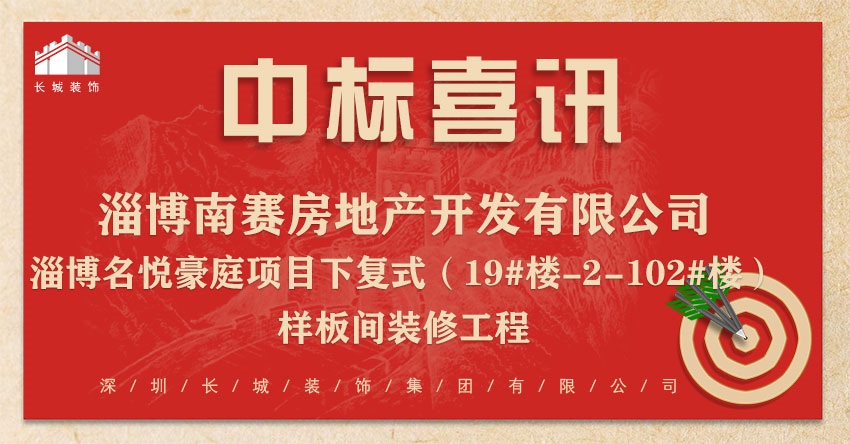 恭喜我司中标:淄博南赛房地产开发有限公司-淄博名悦豪庭项目下复式(19#楼-2-102#楼)样板间装修工程