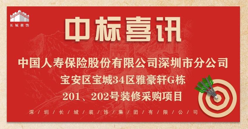 恭喜我司中标:中国人寿保险股份有限公司深圳市分公司-中国人寿深圳市分公司宝安区宝城34区雅豪轩G栋201、202号装修采购项目