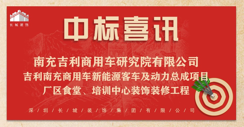 恭喜我司中标:南充吉利商用车研究院有限公司-吉利南充商用车新能源客车及动力总成项目厂区食堂、培训中心装饰装修工程