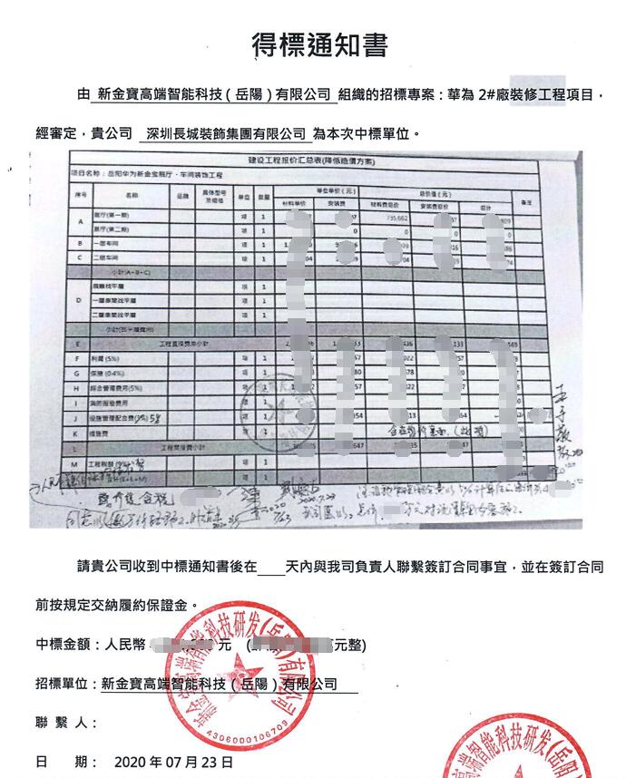 2020-7-312020年7月23日,深圳长城装饰集团有限公司凭借丰富的施工经验、雄厚的技术资金实力、良好的商业信誉中标“湖南城陵矶华为新金宝高端制造基地2#厂装修工程”项目,这是继2019年中标并圆满完成“泰金宝光电(岳阳)有限公司的年产1300万台喷墨打印机”项目后又一佳绩。