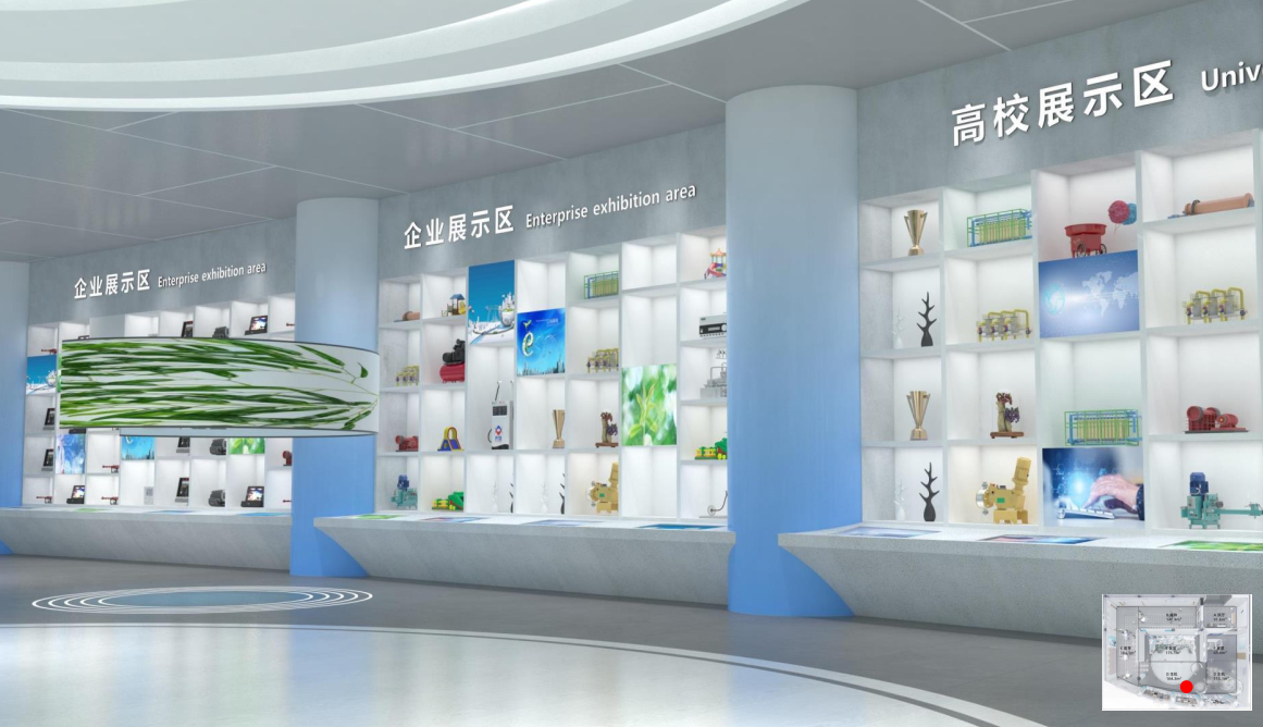 展馆分为:“序厅”、“播种·筑智慧引擎”、“萌芽·汇创新资源”、“生机·集创新结晶“、“繁茂·构建科创版图“、“展望·迎美好生活“等版块展陈内容,通过加入展馆智慧云媒体,以互联网思维为导向,综合利用多媒出模块化、网络化、自动化的展示体验模式和安全、便捷、快速的数字管理服务,拉近展馆与观众的距离,实现智能展馆模式。