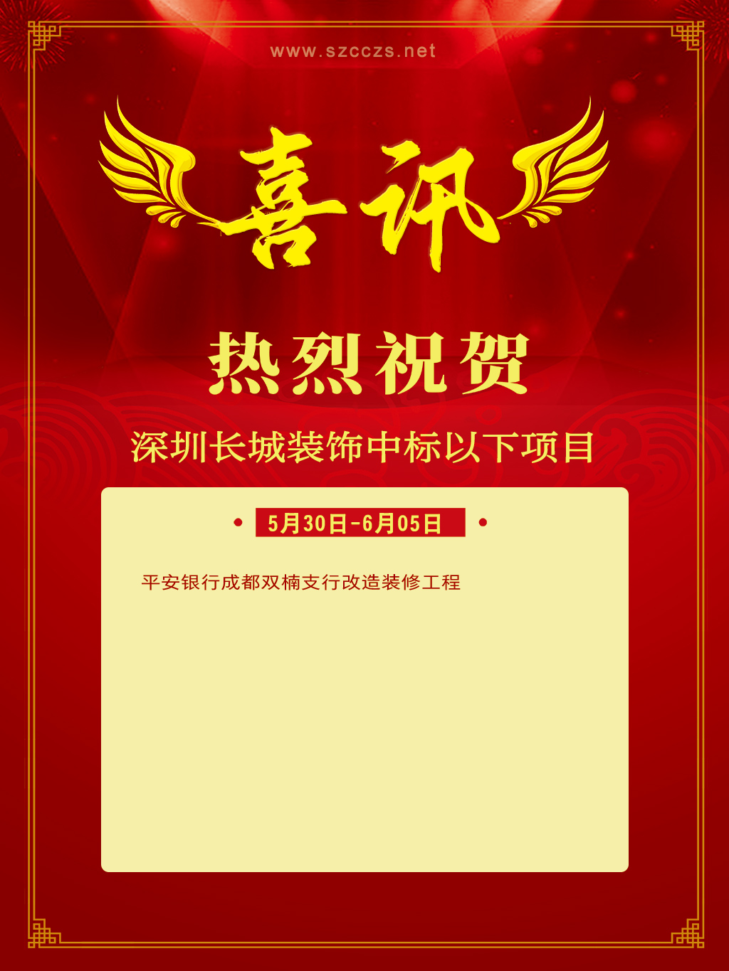 中标喜讯 | 5月30日~6月05日长城装饰集团工程中标项目