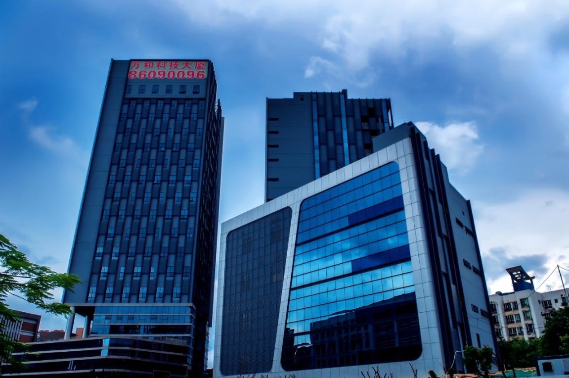获奖项目万和科技大厦幕墙工程位于深圳市光明新区光明高新技术产业园东片区,二十五号路以南、三十三号路以西。建设用地面积约16211.84m^2,总建筑面积约67895m^2。地下为一层,局部为两层(人防地下室);地上部位由4栋塔楼组成,其中:A栋(研发大楼及配套与商业)13700 m^2;B栋(工业厂房) 15294 m^2;C栋(工业厂房) 23398 m^2;D栋(工业厂房)2325m^2; 本工程由深圳万和制药有限公司投资兴建,华森建筑与工程设计顾问有限公司设计,深圳市东部建设监理有限公司监理,深圳中核华泰建设有限公司总承包承建。 4栋建筑中一栋为产品研发楼,另外三栋均为工业厂房,建筑内部均为超大开间设计,可供业主灵活使用内部空间;周边建筑物分布较广,多为工业厂房,项目的东南面紧邻交通干道,立面设计上均为幕墙,由金属幕墙与玻璃幕墙的组合而成,外观新颖大气。 A栋研发大楼为项目最高楼,屋顶最高为83.85米,立面设计上东南面均为幕墙,由白色金属孔板幕墙及浅蓝中空玻璃幕墙组合而成,西北面为浅灰色涂料装饰,上下层窗间交错设置白色穿孔铝板;其他栋立面设计与A栋相似,并在二层以下设计为浅灰色石材幕墙面,外观时尚新颖、层次分明。