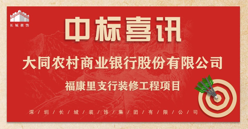 恭喜我司中标:大同农村商业银行股份有限公司-大同农村商业银行股份有限公司福康里支行装修工程项目