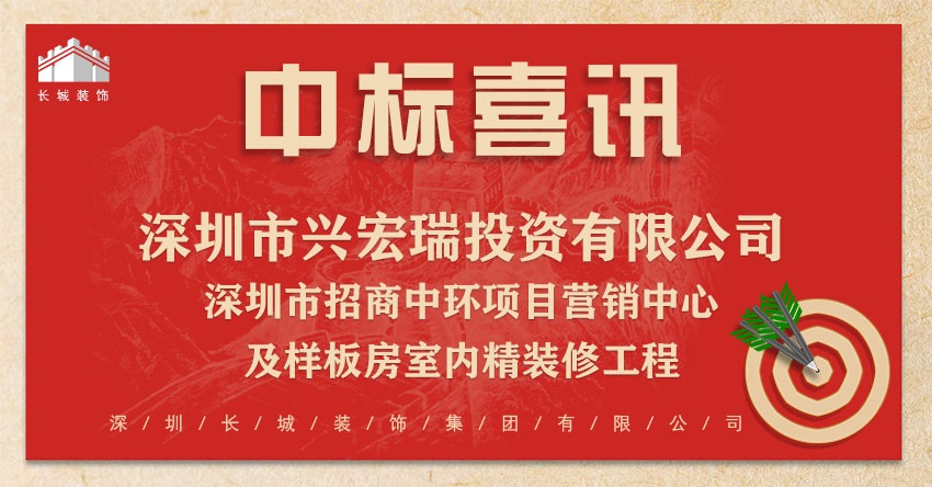 恭喜我司中标:深圳市兴宏瑞投资有限公司-深圳市招商中环项目营销中心及样板房室内精装修工程