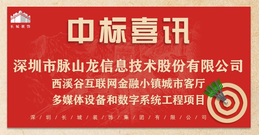 恭喜我司中标:深圳市脉山龙信息技术股份有限公司-西溪谷互联网金融小镇城市客厅多媒体设备和数字系统工程项目