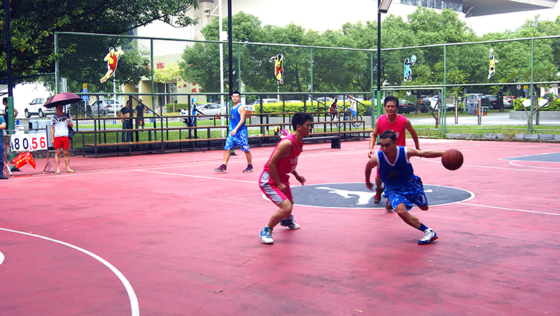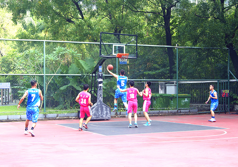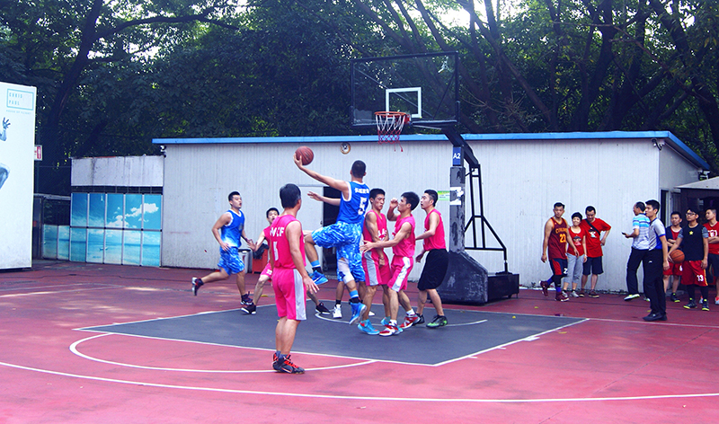两队为现场观众奉献了一场精彩的比赛。比赛紧张激烈的进行着,我方球员状态较佳每次进攻都能得分,但华加日的队员们也不气馁。双方队员频频强攻得分,场面异常火爆。每个队员都在积极跑位,为队友作掩护,还时不时有精妙的传球、漂亮的配合和精彩的上篮。比赛中也有意外碰撞跌倒发生,可是队员们没有因此影响比赛情绪,相互之间拍着肩膀互相安慰一下接着再来。