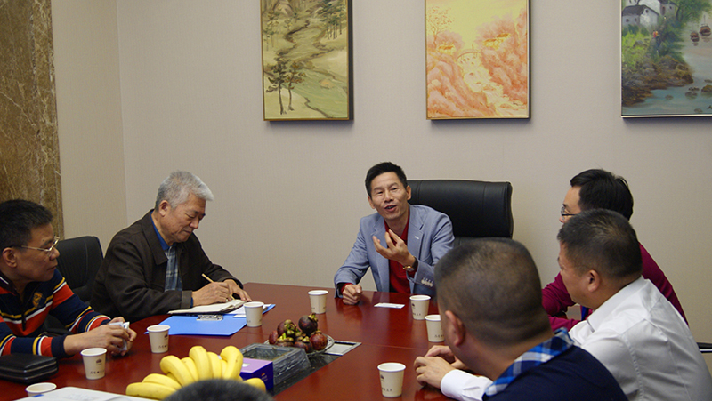 参观结束后,双方进行了亲切的会谈。首先由我司叶晓晨董事长发表讲话,叶董事长表示欢迎大家的到来,目前建筑装饰行业面临市场经济的低迷现象,行业各企业发展都面临一定的困境,希望行业协会给予大力支持。